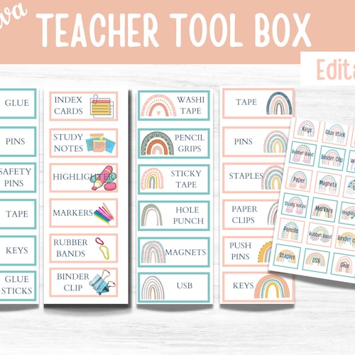 Teacher Toolbox Labels - Etsy Teacher Toolbox Labels--Includes Blank Editable Labels TheSourKraus (341) $5.00 Bright Rainbow Boho Toolbox Labels l Editable ChristinesCC (100) $3.00 OVER THE RAINBOW Teacher Toolbox classroomHQ (1,458) $3.00 Toolbox Teacher labels editable, confetti décor, toolbox template, printable download, rainbow classroom décor, back to school teacher gift